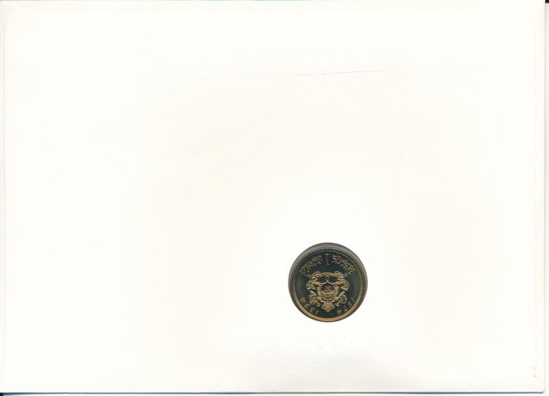 Description: Marokkó 1974. 1D Cu-Ni felbélyegzett borítékban, bélyegzéssel, német nyelvű leírással T:UNC Morocco 1974. 1 Dirham Cu-Ni in envelope with stamp, cancellation and a prospectus in german C:UNC