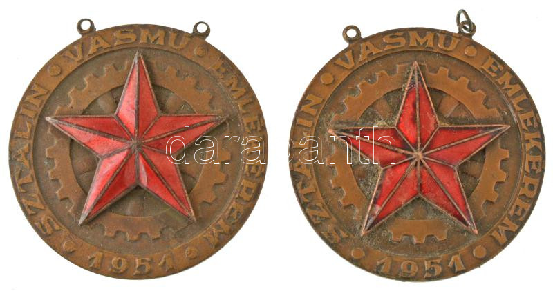 1951. "Kohászati Miniszter - Sztálin Vasmű Emlékérem" részben zománcozott, bronzozott Fe kitüntetés medallion része (2x) T:VF