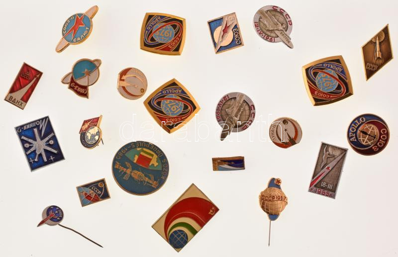 22db-os űrutazással kapcsolatos, főleg szovjet jelvényből álló tétel T...