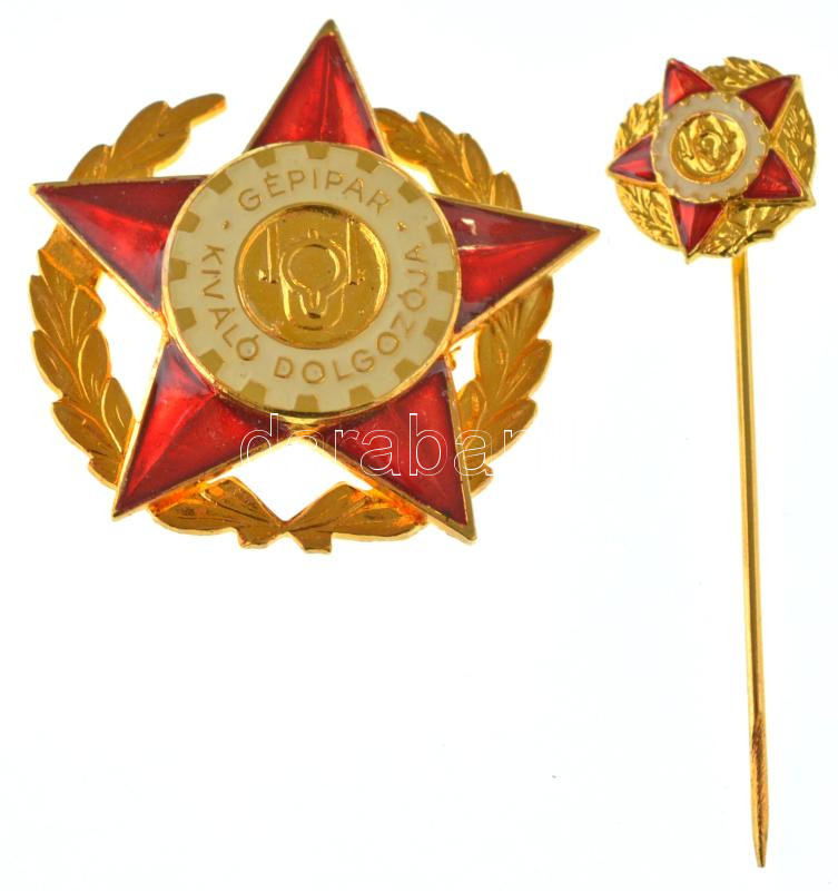 ~1960-1970. "Gépipar Kiváló Dolgozója" műgyantás fém jelvény és miniatűr tokban T:AU