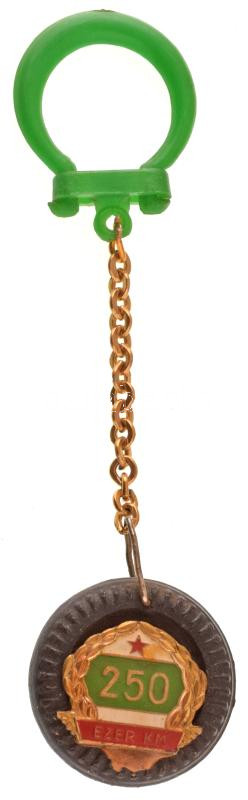 ~1980. "250 ezer km balesetmentesen" műgyantás kitüntető autójelvény 2db miniatűrje tű nélkül, kis gumiabroncsra rögzítve, kulcstartóvá alakítva (17x20mm) T:AU,XF