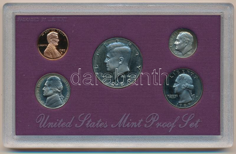 Description: Amerikai Egyesült Államok 1989S 1c-1/2$ (5xklf) forgalmi sor eredeti tokban, tanúsítvánnyal T:PP