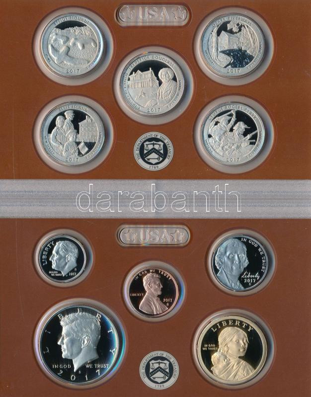 USA 2017S 1 Cent - 1 Dollar (5xdiff) coin set in plastic case + 1/4 Dollar Cu-Ni "America the Beautiful" (5xdiff) in plastic case, with common certificate, cardboard case C:PP