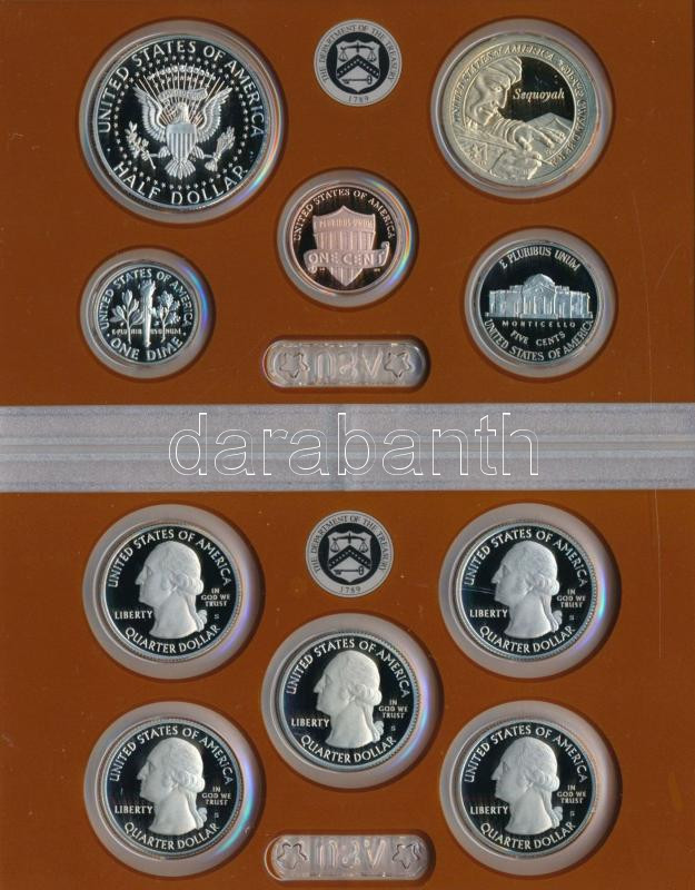 Amerikai Egyesült Államok 2017S 1c-1$ (5xklf) forgalmi sor, műanyag tokban + 1/4$ Cu-Ni "Csodálatos Amerika" (5xklf), műanyag tokban, közös tanúsítvánnyal, karton dísztokban T:PP