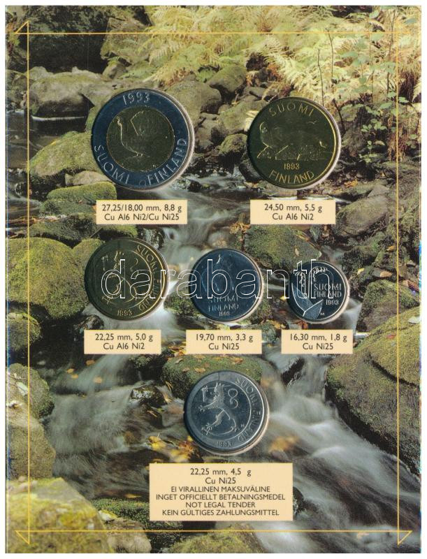 Description: Finnország 1993. 10p - 10M (6xklf) forgalmi sor benne 1M Cu-Ni forgalomba nem került érme, karton dísztokban T:UNC