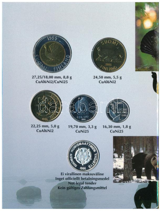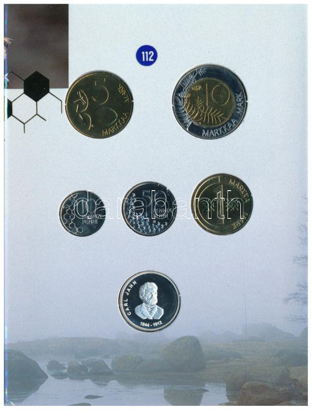 Finnország 1995. 10p - 10M (5xklf) forgalmi sor + "Finn verde / C... https://www.darabanth.com/en/457-Online-auction/457.0/Numismatics/Foreign-Coin-sets~17/Finnorszag-1995-10p-10M-5xklf-forgalmi-sor-plus-Finn-verde-Carl-Jahn-peremen-jelzett-Ag-zseto~II3033777