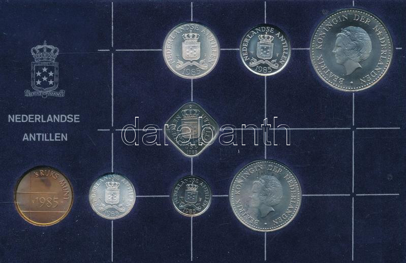 Description: Holland Antillák 1985. 1c - 2 1/2G (7xklf) forgalmi sor + "Rijks Munt" Cu zseton műanyag dísztokban T:UNC