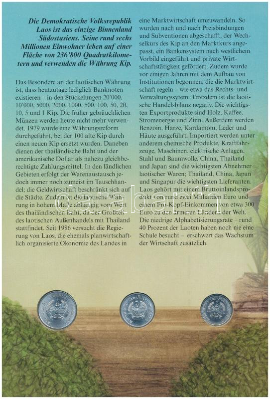Laos 1980. 10 Att - 50 Att (3xdiff) coin set on decorative, informative cardboard C:UNC