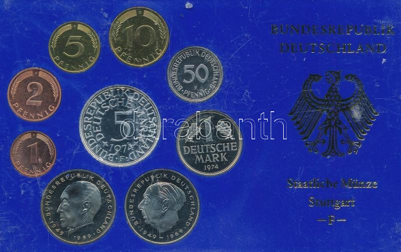 NSZK 1974F 1pf-5M (9xklf) forgalmi szett műanyag tokban T:PP tokon kar... https://www.darabanth.com/en/457-Online-auction/457.0/Numismatics/Foreign-Coin-sets~17/NSZK-1974F-1pf-5M-9xklf-forgalmi-szett-muanyag-tokban-TPP-tokon-karc-GFR-1974F-1-Pfennig-5-Mar~II3033803