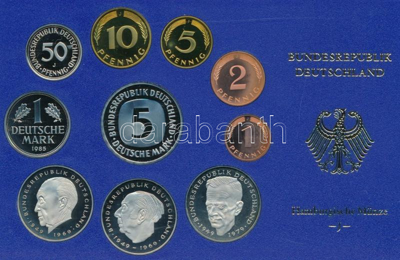 https://www.darabanth.com/en/457-Online-auction/457.0/Numismatics/Foreign-Coin-sets~17/NSZK-1985J-1pf-5M-10xklf-forgalmi-sor-muanyag-disztokban-TPP-FRG-1985J-1-Pfennig-5-Mark-10xd~II3033779