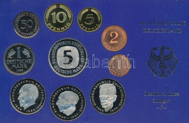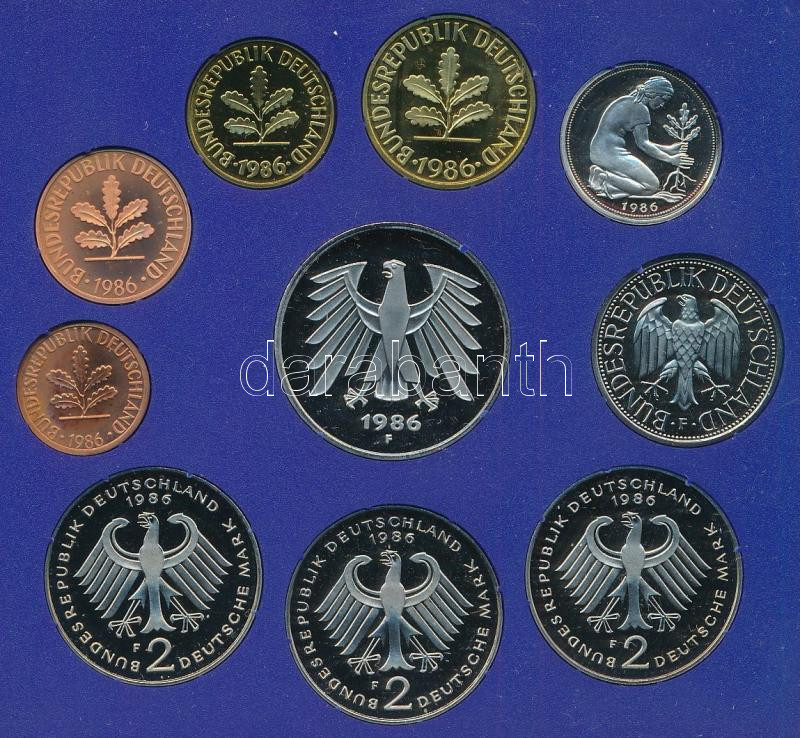 https://www.darabanth.com/en/457-Online-auction/457.0/Numismatics/Foreign-Coin-sets~17/NSZK-1986F-1pf-5M-10xklf-forgalmi-sor-muanyag-disztokban-TPP-FRG-1986F-1-Pfennig-5-Mark-10xd~II3033794