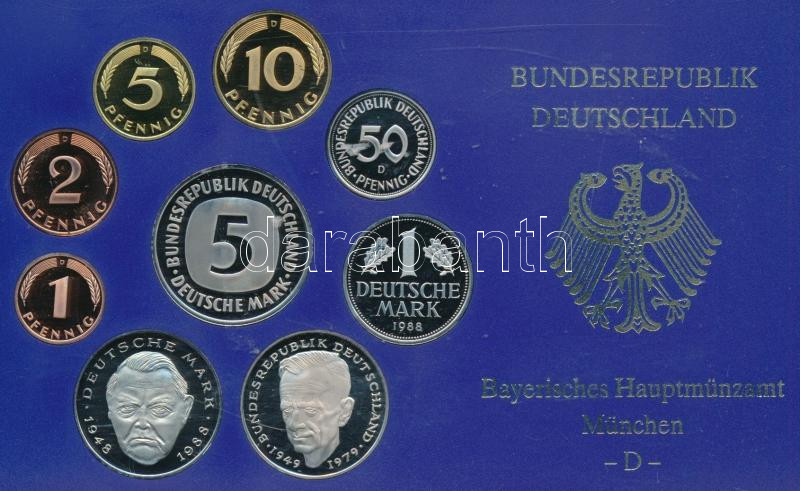 NSZK 1988D 1pf-5M (9xklf) forgalmi sor műanyag dísztokban T:PP kis pat... https://www.darabanth.com/en/457-Online-auction/457.0/Numismatics/Foreign-Coin-sets~17/NSZK-1988D-1pf-5M-9xklf-forgalmi-sor-muanyag-disztokban-TPP-kis-patina-FRG-1988D-1-Pfennig-5-~II3033755