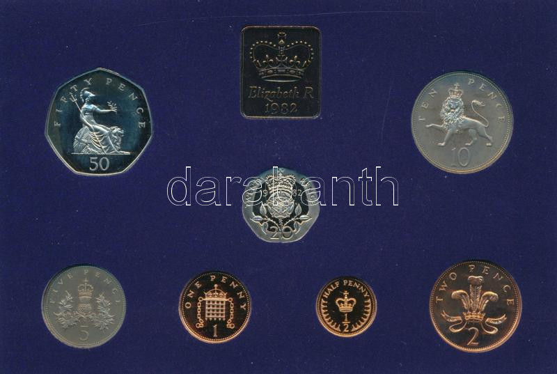 Nagy-Britannia 1982. 1/2p-50p (7xklf) forgalmi sor + zseton műanyag dísztokban, borítékban, tanúsítvánnyal T:PP patina