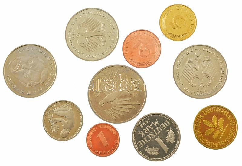 https://www.darabanth.com/en/457-Online-auction/457.0/Numismatics/Foreign-Coin-sets~17/Nemetorszag-1992J-1pf-5M-10xklf-bontott-forgalmi-sor-TUNC-AU-PP--Germany-1992J-1-Pfennig-5~II3032163
