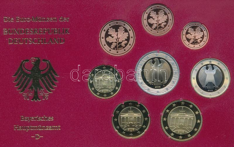 Németország 2003D 1c-2E (8xklf) forgalmi szett műanyag és papírtokban ... https://www.darabanth.com/en/457-Online-auction/457.0/Numismatics/Foreign-Coin-sets~17/Nemetorszag-2003D-1c-2E-8xklf-forgalmi-szett-muanyag-es-papirtokban-TPP-kis-patina-Germany-~II3033881