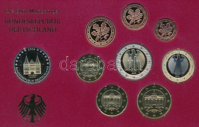 Németország 2006D 1c-2E (8xklf) + 2E "Schleswig-Holstein" fo... https://www.darabanth.com/en/457-Online-auction/457.0/Numismatics/Foreign-Coin-sets~17/Nemetorszag-2006D-1c-2E-8xklf-plus-2E-Schleswig-Holstein-forgalmi-szett-muanyag-es-papirtokban~II3033903