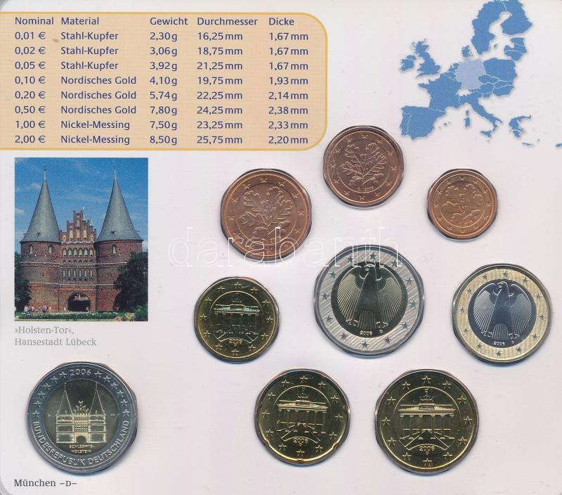Németország 2006D 1c-2E (8xklf) + 2E "Schleswig-Holstein" fo... https://www.darabanth.com/en/457-Online-auction/457.0/Numismatics/Foreign-Coin-sets~17/Nemetorszag-2006D-1c-2E-8xklf-plus-2E-Schleswig-Holstein-forgalmi-szett-muanyag-tokban-TUNC-Ge~II3033863