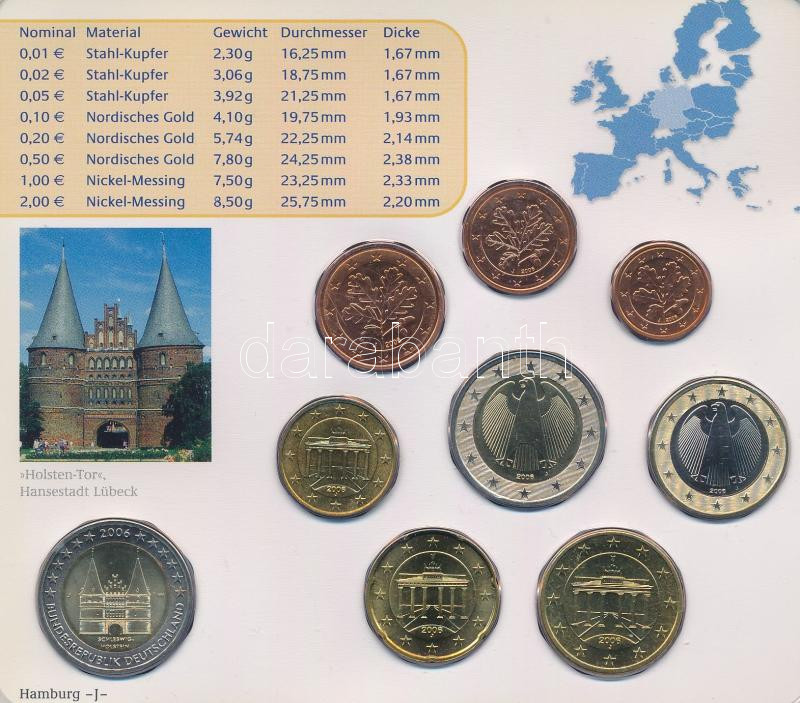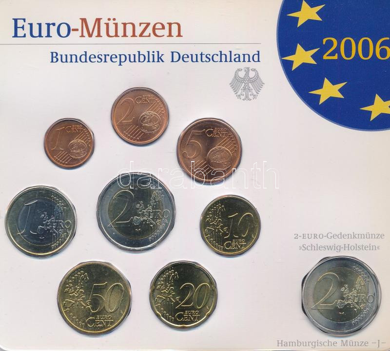 Németország 2006J 1c-2E (8xklf) + 2E "Schleswig-Holstein" fo... https://www.darabanth.com/en/457-Online-auction/457.0/Numismatics/Foreign-Coin-sets~17/Nemetorszag-2006J-1c-2E-8xklf-plus-2E-Schleswig-Holstein-forgalmi-szett-muanyag-tokban-TUNC-Ge~II3033868