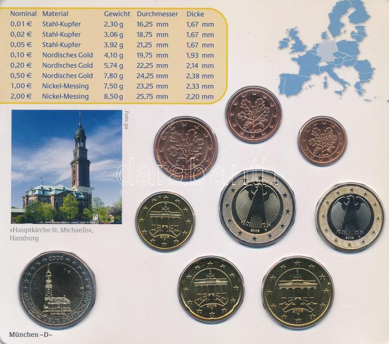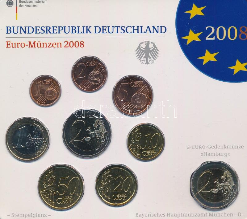 Németország 2008D 1c-2E (8xklf) + 2E "Hamburg" forgalmi szet... https://www.darabanth.com/en/457-Online-auction/457.0/Numismatics/Foreign-Coin-sets~17/Nemetorszag-2008D-1c-2E-8xklf-plus-2E-Hamburg-forgalmi-szett-muanyag-tokban-TUNC-Germany-2008D~II3033869