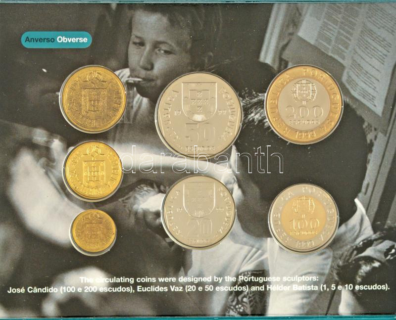 Portugália 1999. 1E-200E (7xklf) + 100E "UNICEF" + 200E "UNICEF" forgalmi sor, karton dísztokban T:BU