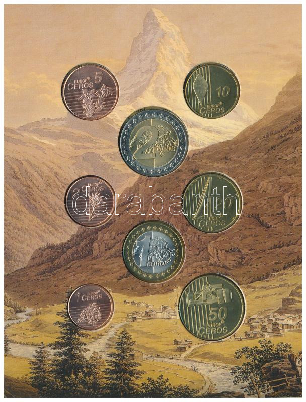 Switzerland 2003. 1 Ceros - 2 Europ (8xdiff) trial strike coin set in cardboard case C:UNC
