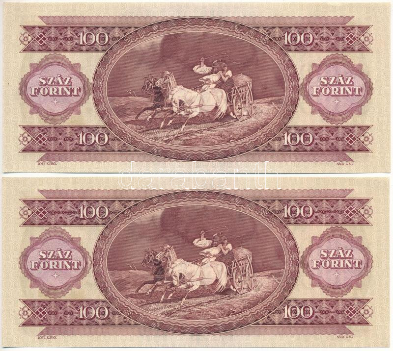 1980. 100Ft (2x) sorszámkövetők "B 149 154707 - B 149 154708"...