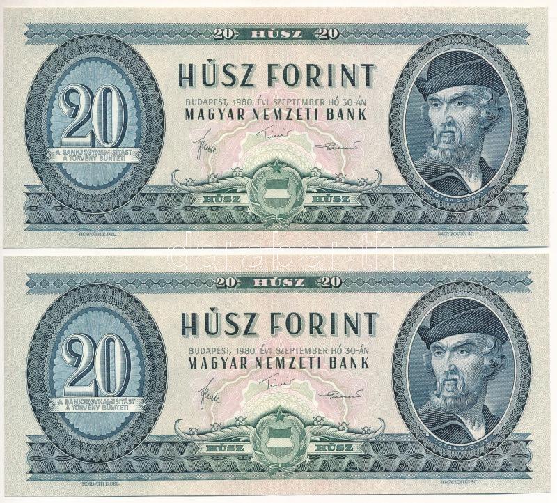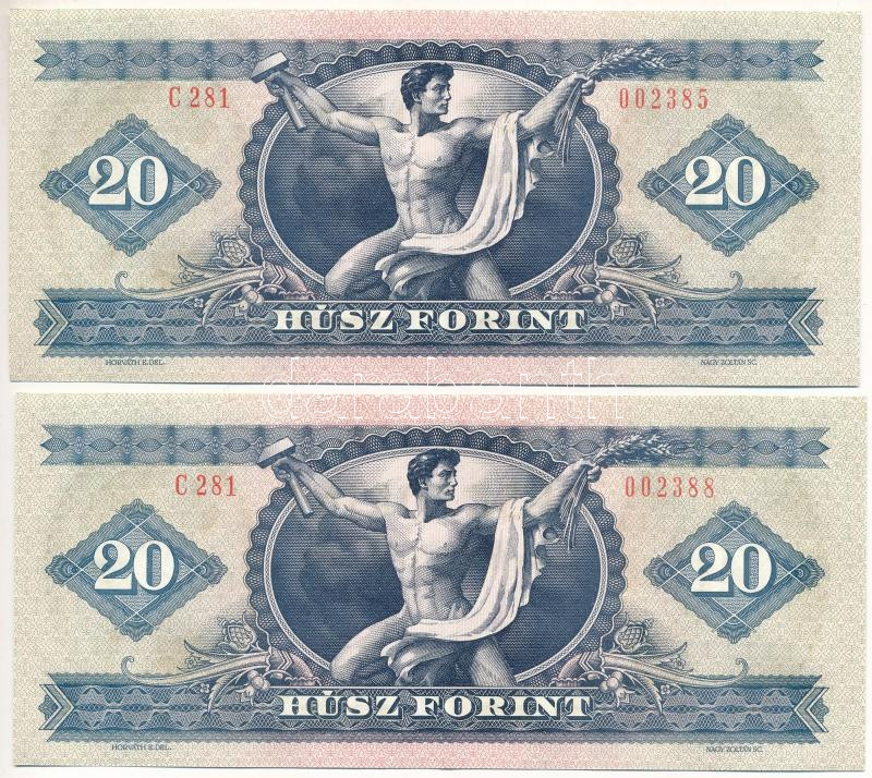 1980. 20Ft (2x) közeli sorszámúak "C 281 002385", "C 281 002388" T:XF