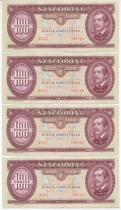 1992. 100Ft (4x) sorszámkövetők "B 212 108748 - B 212 108751" T:F szép papír