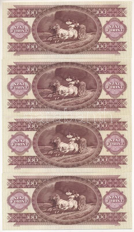 1992. 100Ft (4x) sorszámkövetők "B 212 108748 - B 212 108751"...