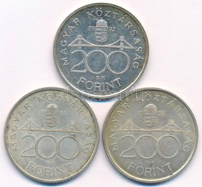 1992-1993. 200Ft Ag "MNB" (3x) T:AU,XF Adamo F13