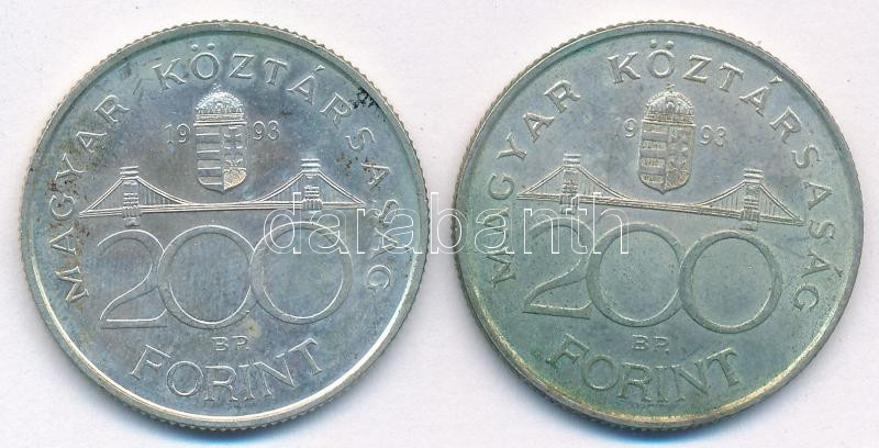 1993. 200Ft Ag "MNB" (2x) T:AU patina Adamo F13