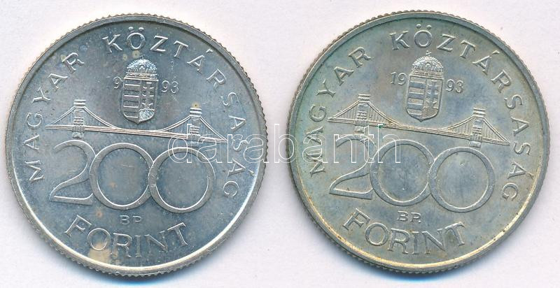 1993. 200Ft Ag "MNB" (2x) T:AU patina Adamo F13