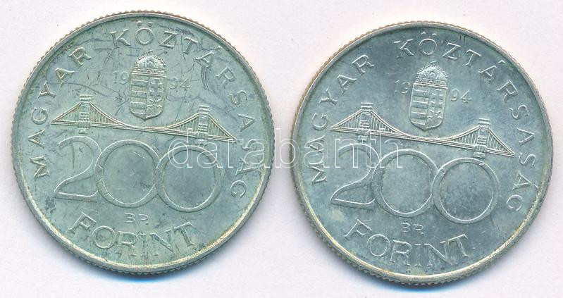 https://www.darabanth.com/en/457-Online-auction/457.0/Numismatics/Hungarian-coins-and-coins-with-Hungarian-mint-marks~9/1994-200Ft-Ag-Deak-2x-TAU-XF-patina--Adamo-F131~II3022434