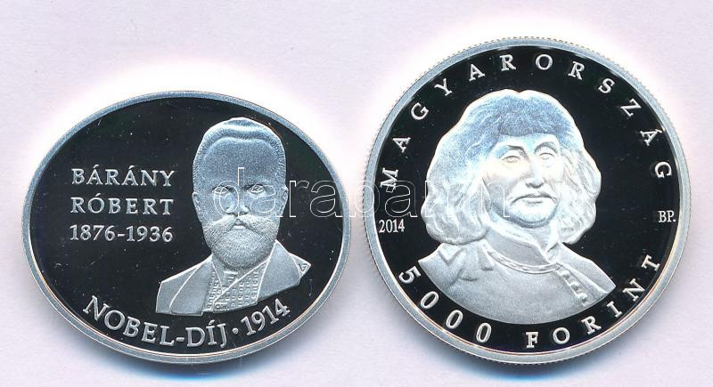 2014. 5000Ft Ag "100 éve nyert Nobel-díjat Bárány Róbert " kapszulában, tanúsítvánnyal + 2014. 5000Ft Ag "Zrínyi Miklós" kapszulában, tanúsítvánnyal T:PP