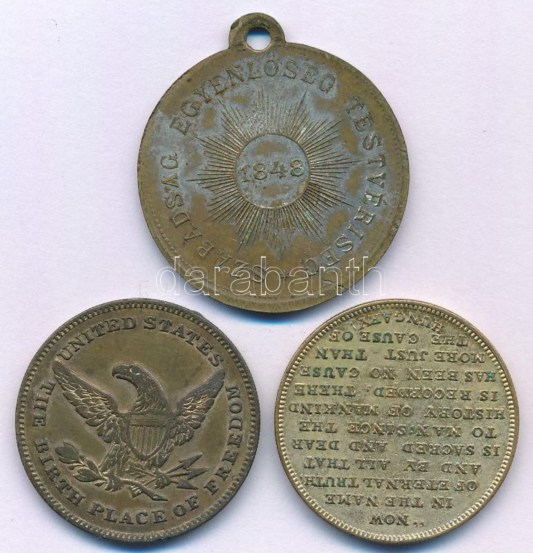 Description: 1848-DN. "Kossuth Lajos" 3xklf kétoldalas bronz emlékérem, közte Amerikai Egyesült Államok DN "Louis Kossuth, the Washintgon of Hungary" kétoldalas bronz emlékérem T:XF,VF patina