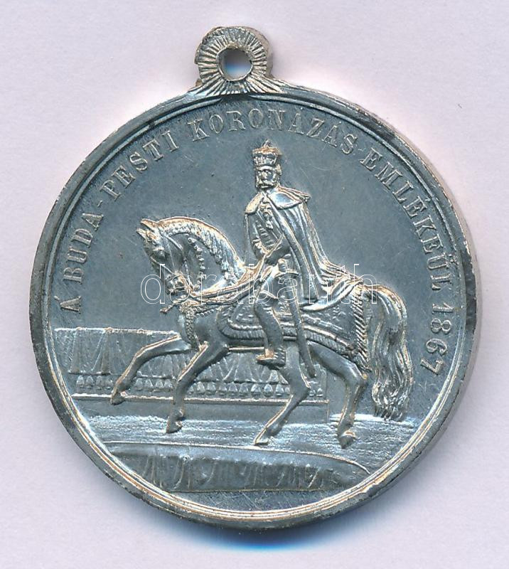 1867. "A Buda-Pesti koronázás emlékéül 1867 / Éljen a király éljen a haza" ezüstözött ón emlékérem füllel (33mm) T:AU helyenként kopott ezüstözés
