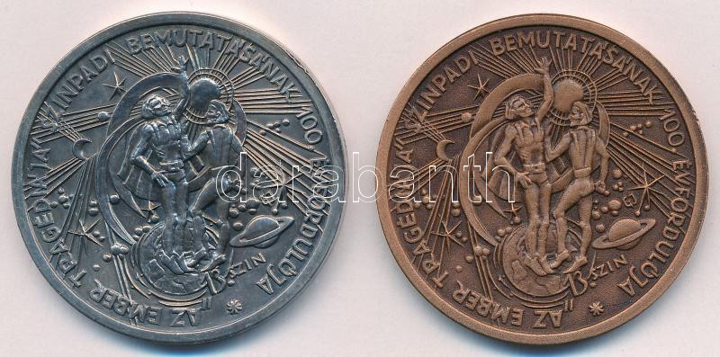 Description: 1983. "A Magyar Éremgyűjtők Egyesülete XIII. Vándorgyűlése - Salgótarján - Madách Imre / Az ember tragédiája színpadi bemutatásának 100. évfordulója" ezüstpatinázott bronz és bronz emlékérem pár (42,5mm) T:AU Adamo ST2