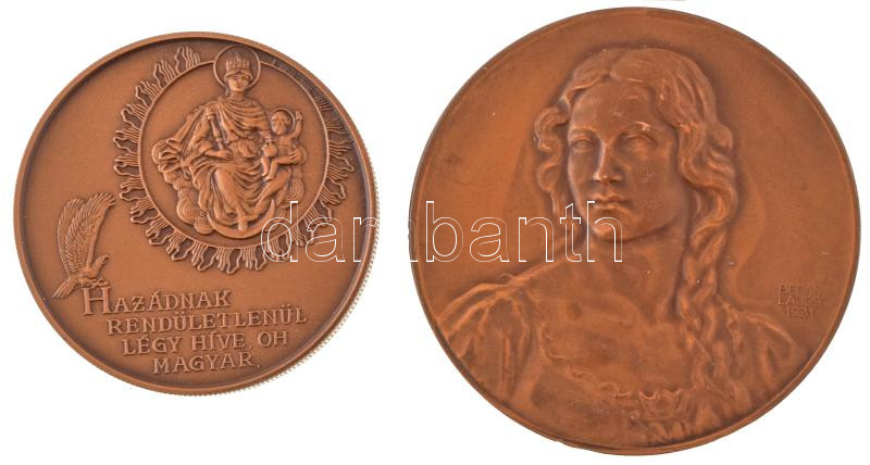 Berán Lajos (1883-1943) ~1931. "Budapesti emlék" kétoldalas bronz emlékérem (79mm) + Bognár György (1944-) 1990. "Magyar Köztársaság 1956-1989. Október 23. / Hazádnak rendületlenül légy híve, oh magyar" bronz emlékérem (65mm) T:AU,XF közte patina, kis ph, ü.