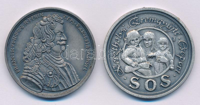 Bognár György (1944-) 1985. "MÉE Szécsény / II. Rákóczi Ferenc halálának 250. évfordulójára - Rodostó" ezüstpatinázott Br emlékérem (42,5mm) + Bogár Lívia (1957-) 1987. "Keszthelyi Éremgyűjtő Csoport SOS / Battonyai Gyermekfaluért" ezüstpatinázott Br emlékérem (42,5mm) T:UNC Adamo SY4, KE48