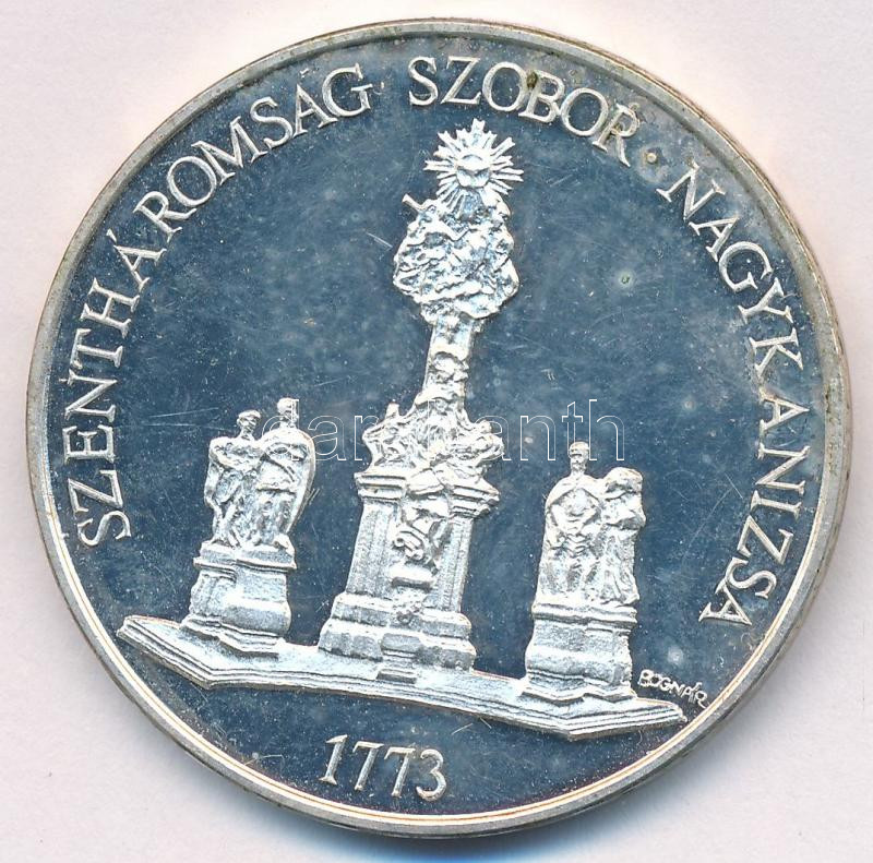 Bognár György (1944-) 1995. "Kanizsa első írásos emlékének 750. évfordulója 1245-1995 / Szentháromság szobor Nagykanizsa 1773" ezüstözött fém emlékérem (42,5mm) T:AU (eredetileg PP)