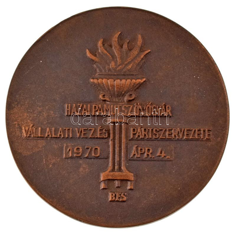 Description: Boldogfai Farkas Sándor 1970. "Hazánk felszabadulásának 25. évfordulójára / Hazai Pamut Szövőgyá Vállalati Vez. és Pártszervezete" bronz emlékérem tokban (55mm) T:XF