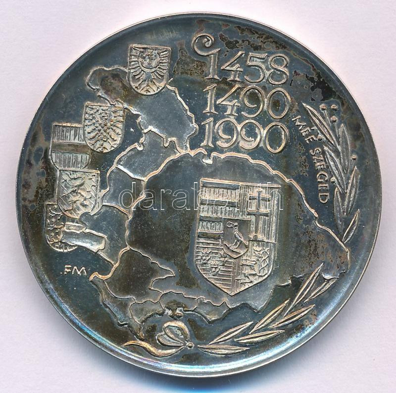 Description: Fritz Mihály (1847-) 1990. "Mathias Rex / MÉE Szeged - Mátyás király halálának 500. évfordulója" Ag emlékérem (35,53g/0.835/42,5mm) T:AU patina Adamo SF13