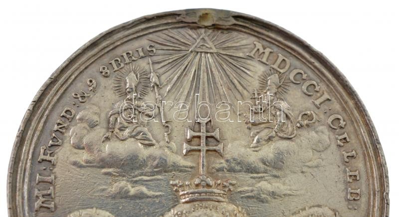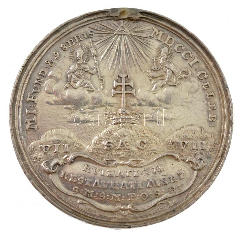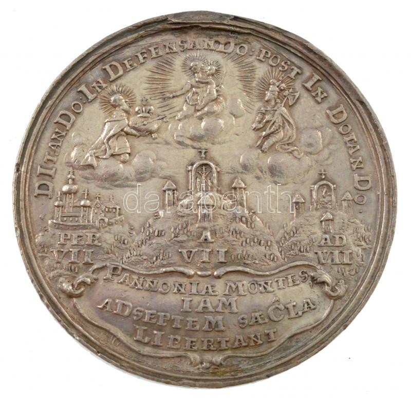 Habsburg Birodalom / Bécs 1701. "A pannonhalmi apátság alapításának 700. évfordulójára" Ag emlékérem. "M.I:FVND:&9 8BRIS - MDCCI:CELEB: - VII-SAEC-VII - RVINATI.VII. - RESTAVRATI MNRY - S:M:S:M:P:O:S.B:/ DITANDO IN DEPENSANDO: POST INDOTANDO. - A/ VII - AD/ VII. - PANNONIAE MONTES - I AM - AD SEPTEM SAECLA - LIBERTANT.". Alkotó: Johann Georg Seidlitz (30,53g/39,5mm) T:2- ph., durva fülnyom / Habsburg Monarchy / Vienna 1701. "700th anniversary of the establishment of the Benedictine Pannonhalma Archabbey" Ag commemorative medallion. Maker: Johann Georg Seidlitz (30,53g/39,5mm) C:VF edge error, spectacular ear mark