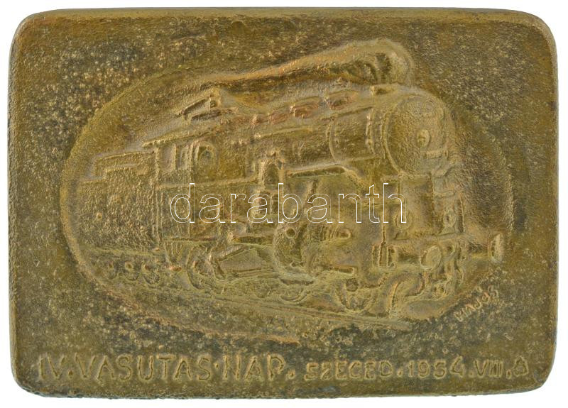 Hajós Géza (?-?) 1954. "IV. Vasutas nap - Szeged 1954. VIII. 8.&q... https://www.darabanth.com/en/457-Online-auction/457.0/Numismatics/Hungarian-commemorative-medals-and-plaques~11/Hajos-Geza-1954-IV-Vasutas-nap-Szeged-1954-VIII-8-fem-emlekplakett-hatoldalan-~II3035877