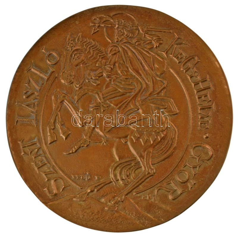Hungary ND "Szent László kegyhelye, Győr / Győr barátainak köre Budapesten - alapítva 1987" two-sided, large bronze commemorative plaque in a decorative case. Sign.: Ferenc Lebó (128mm) C:UNC hanger mark on the edge