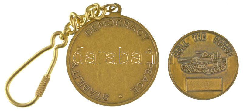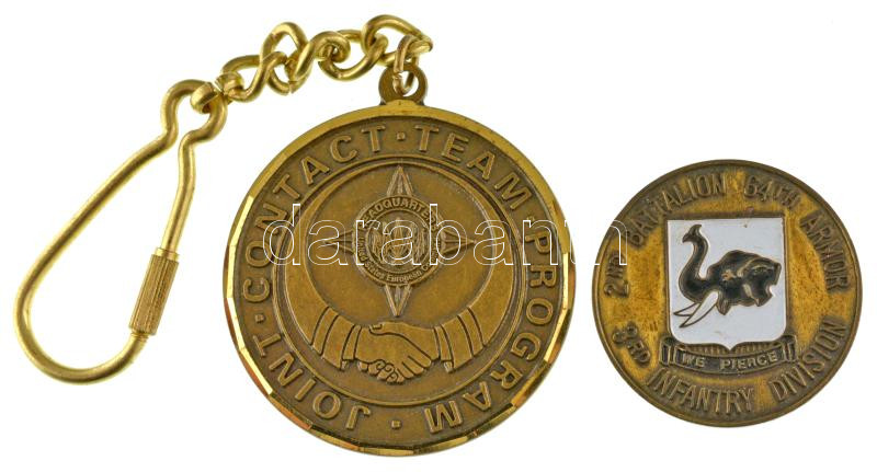 Amerikai Egyesült Államok DN "Egyesült Államok Európai Parancsnoksága" békefenntartó bronz emlékérem kulcstartóként (50mm) + "3. Gyaloghadosztály, 2. zászlóalj, 64. páncélos hadosztály" részben zománcozott bronz emlékérem (38mm) T:AU
