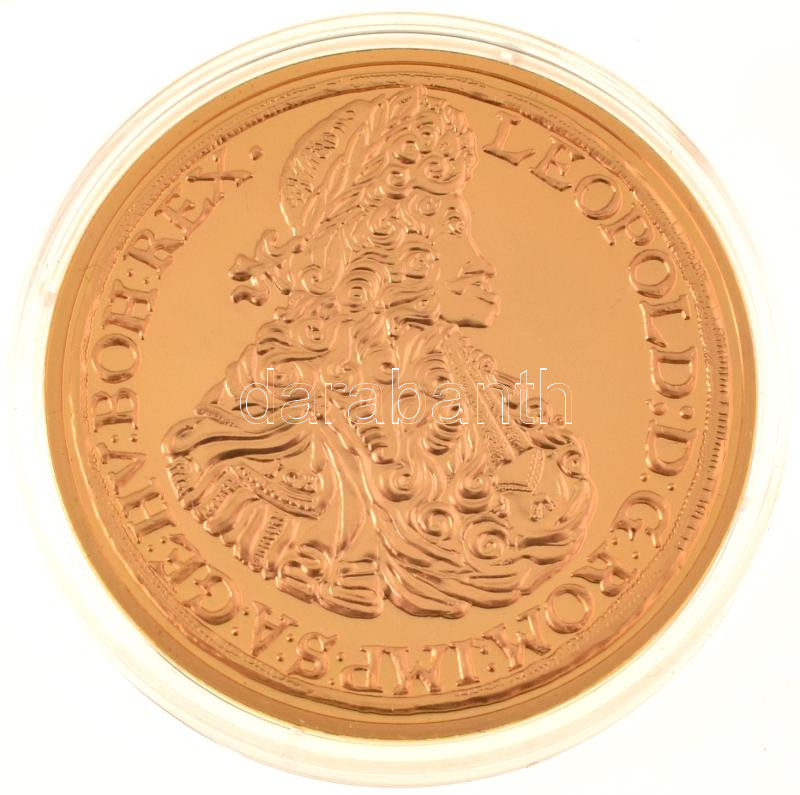 DN "A legértékesebb magyar érmék - I. Lipót tízszeres aranydukátjának replikája" aranyozott Cu emlékérem, "COPY" jelzéssel, tanúsítvánnyal (40mm) T:PP