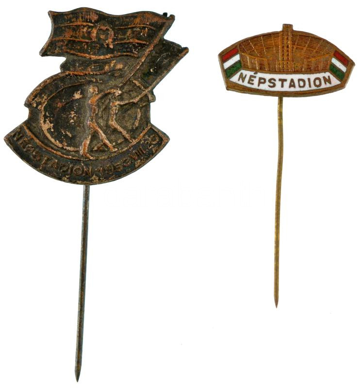1953. "Népstadion 1953. VIII. 20." bronz jelvény a Népstadion megnyitása alkalmából + DN "Népstadion" zománcozott bronz jelvény T:XF,AU