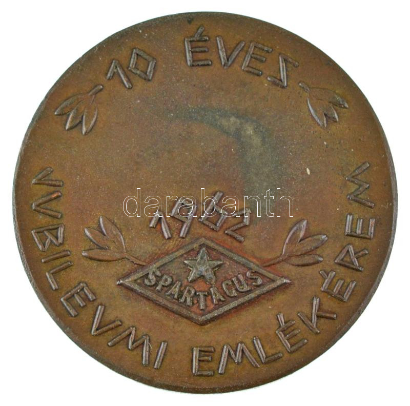 https://www.darabanth.com/en/457-Online-auction/457.0/Numismatics/Sports-awards-and-sports-commemorative-medals~12/1962-Spartacus-10-eves-jubileumi-emlekerem-bronzozott-Zn-emlekerem-40mm-TAU-kopott-bron~II3022014
