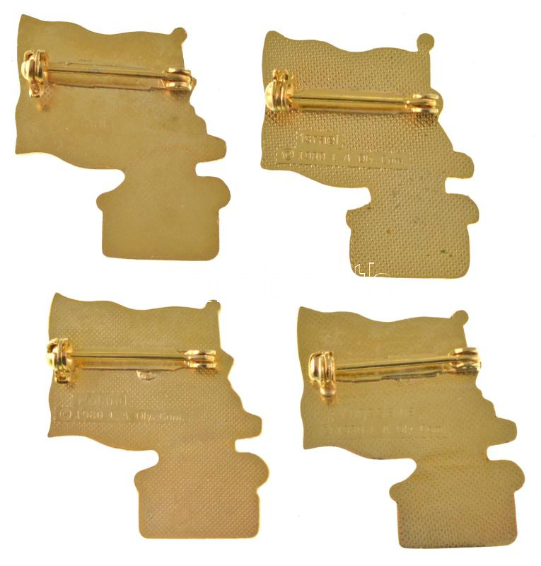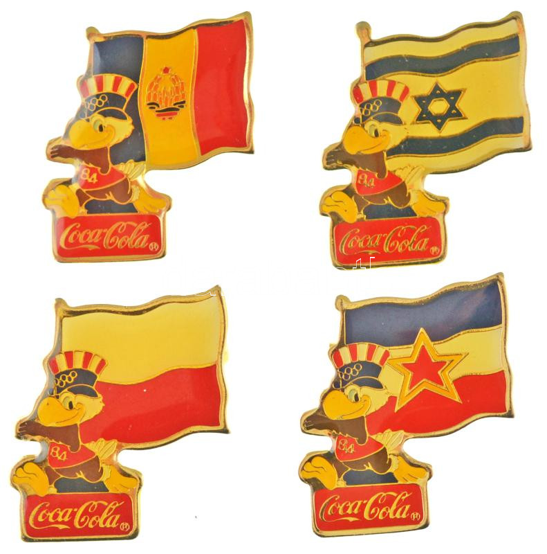 Amerikai Egyesült Államok 1984. "Résztvevő országok - Los Angeles" műgyantás fém olimpiai jelvény (4xklf: Izrael, Jugoszlávia, Lengyelország, Románia) T:UNC,AU USA 1984. "Participating countries - Los Angeles" resin metal Olympic badges (4xdiff: Israel, Yugoslavia, Poland, Romania) C:UNC,AU